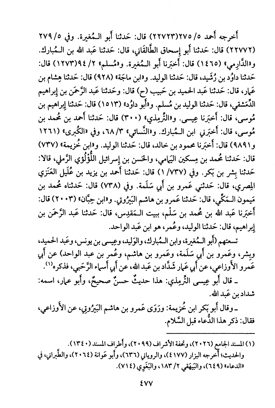 تسعتهم (أَبو المغيرة، وابن المبارك، والوليد، وعيسى بن يونس، وعبد الحميد، وبشر، وعَمرو بن أبي سلمة، وعَمرو بن هاشم، وعمر بن عبد الواحد) عن أبي عَمرو الأوزاعي، عن أبي عمار شداد بن عبد الله، عن أبي أسماء الرحبي، فذكره (¬١).