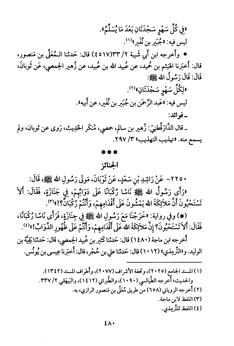 - قلنا: إِسناده ضعيفٌ؛ قال الدارقُطني: زهير بن سالم، حمصي، منكر الحديث، روى عن ثوبان، ولم يسمع منه. «تهذيب التهذيب» ٣/ ٢٩٧.