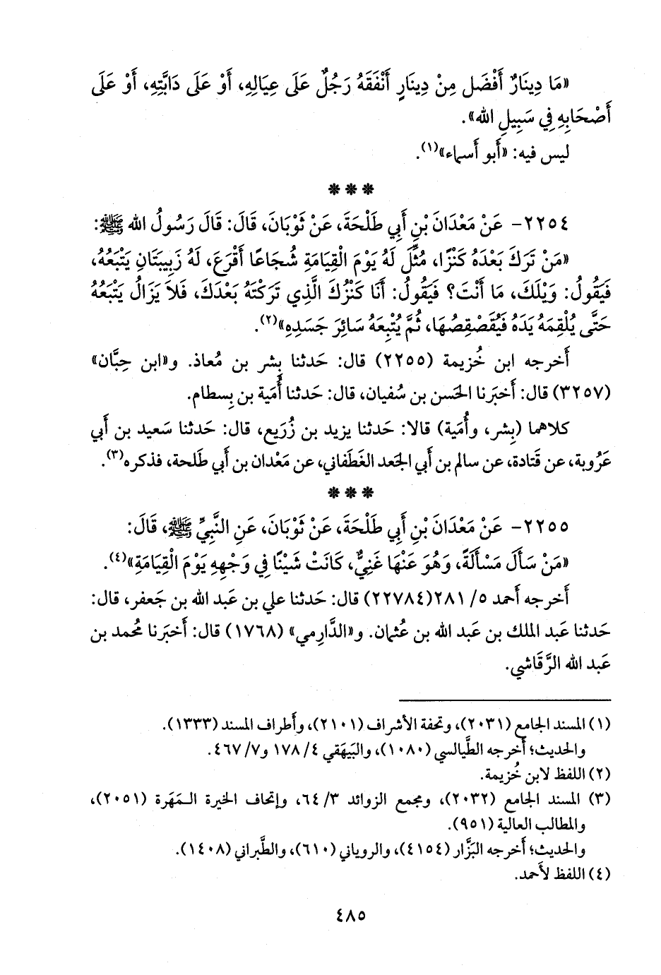 ٢٢٥٤ - عن معدان بن أَبي طلحة، عن ثوبان، أَن رسول الله صَلى الله عَليهِ وسَلمَ قال:
