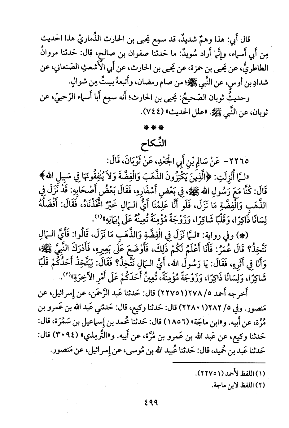 ٢٢٦٥ - عن سالم بن أبي الجعد، عن ثوبان، قال: