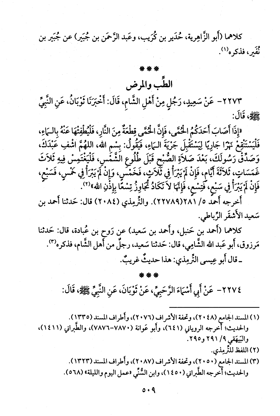 ٢٢٧٣ - عن سعيد، رجل من أهل الشام، قال: أخبرنا ثوبان، عن النبي صَلى الله عَليه وسَلم قال: