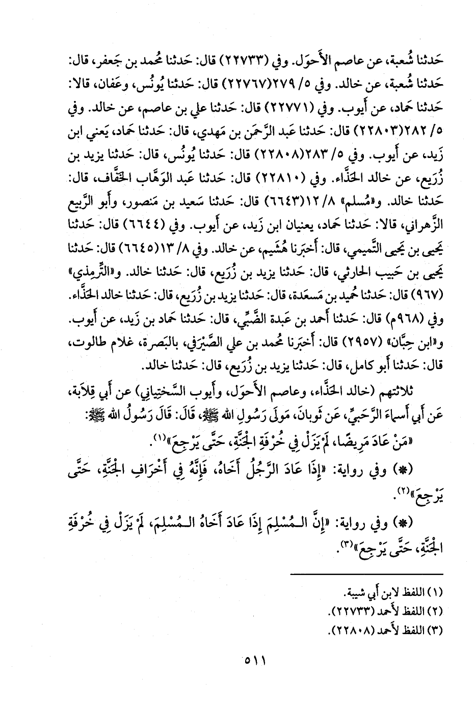 ثلاثتهم (خالد الحَذَّاء، وعاصم الأحول، وأيوب السَّخْتِياني) عن أبي قلابة، عن أبي أسماء الرحبي، عن ثوبان مولى رسول الله صَلى الله عَليه وسَلم قال: قال رسول الله صَلى الله عَليه وسَلم: