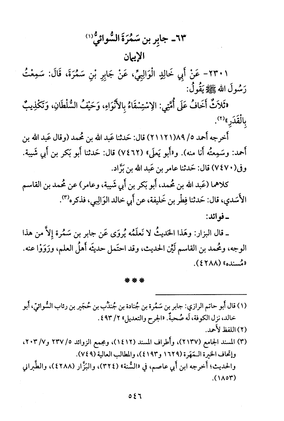 ٢٣٠١ - عن أبي خالد الوالبي، عن جابر بن سَمُرَة، قال: سمعت رسول الله صَلى الله عَليه وسَلم يقول: