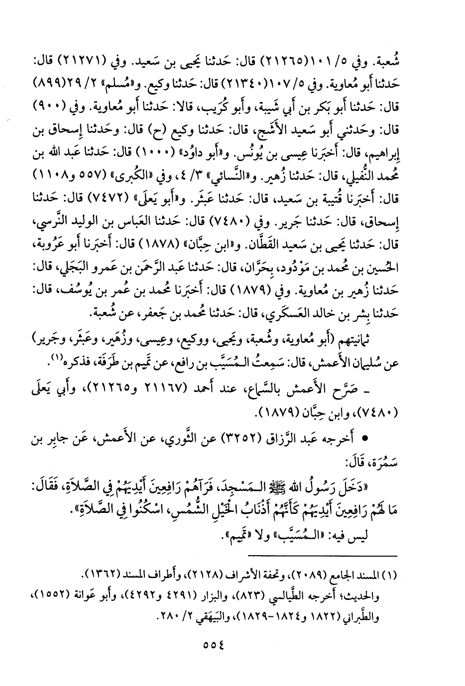 ثمانيتهم (أَبو معاوية، وشعبة، ويحيى، ووكيع، وعيسى، وزهير، وعبثر، وجرير) عن سليمان الأعمش، قال: سمعت المُسَيَّب بن رافع، عن تميم بن طرفة، فذكره (¬١).