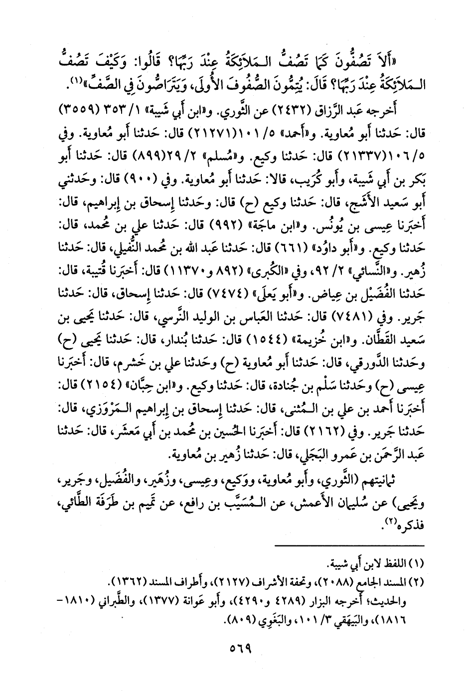 ثمانيتهم (الثوري، وأَبو معاوية، ووكيع، وعيسى، وزهير، والفضيل، وجرير، ويحيى) عن سليمان الأعمش، عن المُسَيَّب بن رافع، عن تميم بن طرفة الطائي، فذكره (¬١).