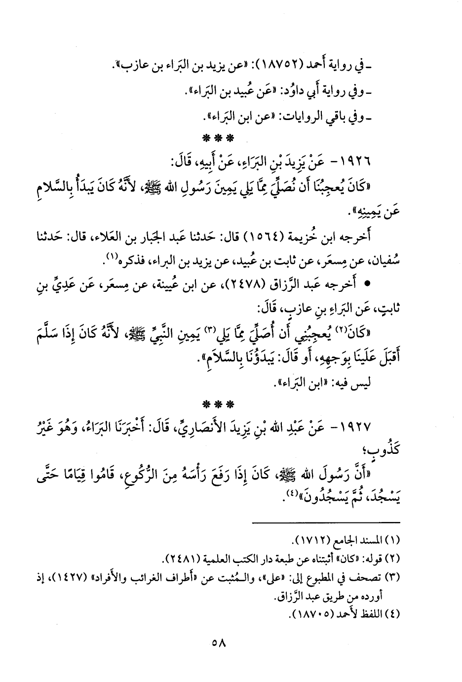 ١٩٢٦ م- عن عَدي بن ثابت، عن البراء بن عازب، قال: