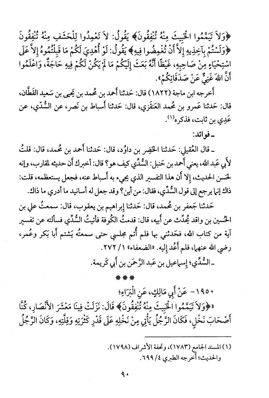 «{ولا تيمموا الخبيث منه تنفقون} قال: نزلت فينا معشر الأنصار، كنا أصحاب نخل، فكان الرجل يأتي من نخله على قدر كثرته وقلته، وكان الرجل