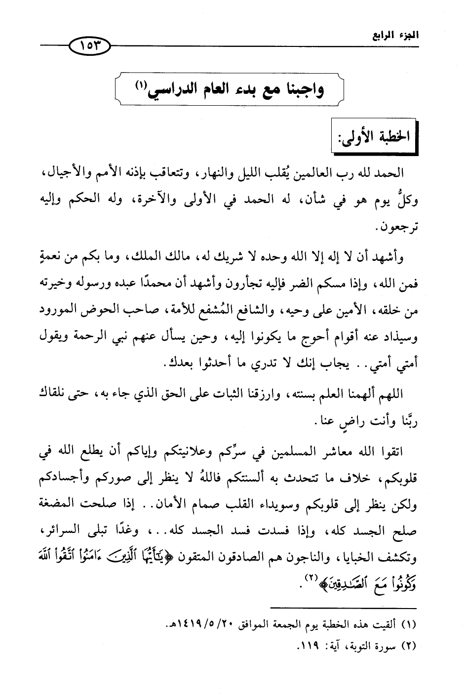 (¬1) ألقيت هذه الخطبة يوم الجمعة الموافق 20/ 5 / 1419 هـ.