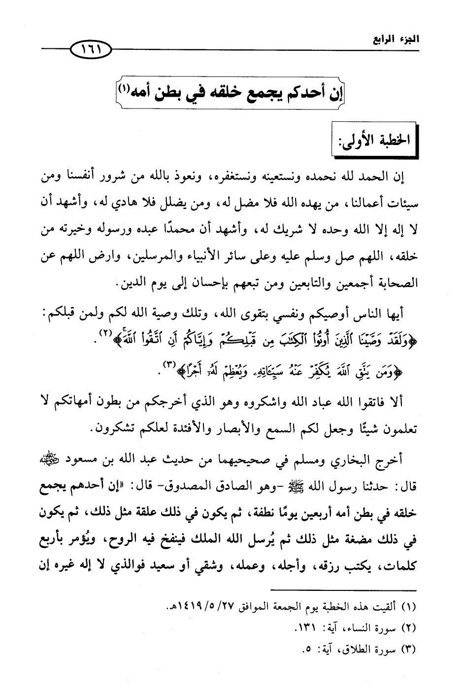 إن أحدكم يجمع خلقه في بطن أمه .. (¬1)