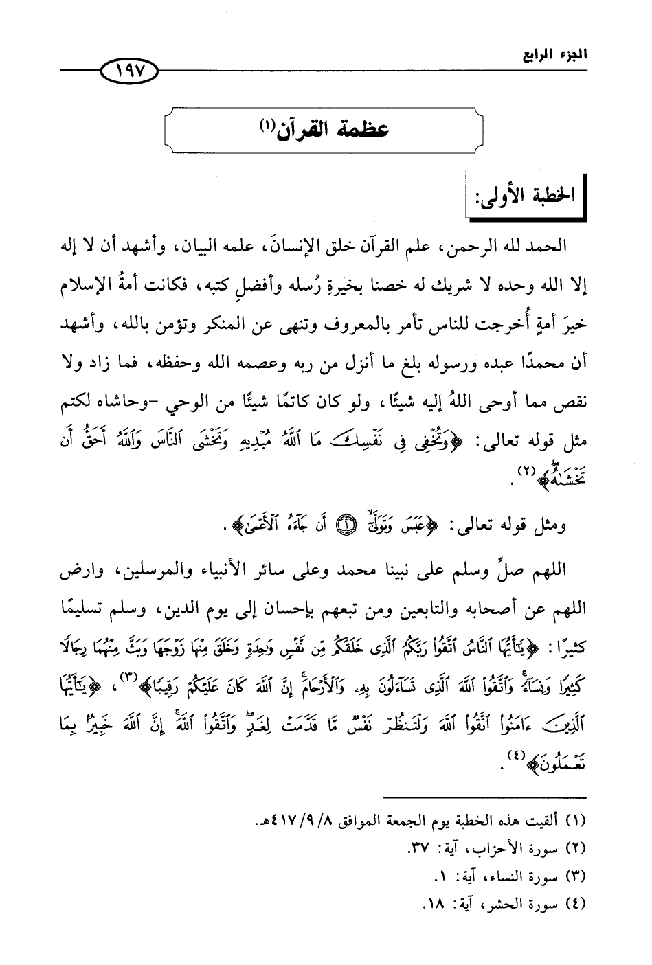 (¬1) ألقيت هذه الخطبة يوم الجمعة الموافق 8/ 417/ 9 اهـ.