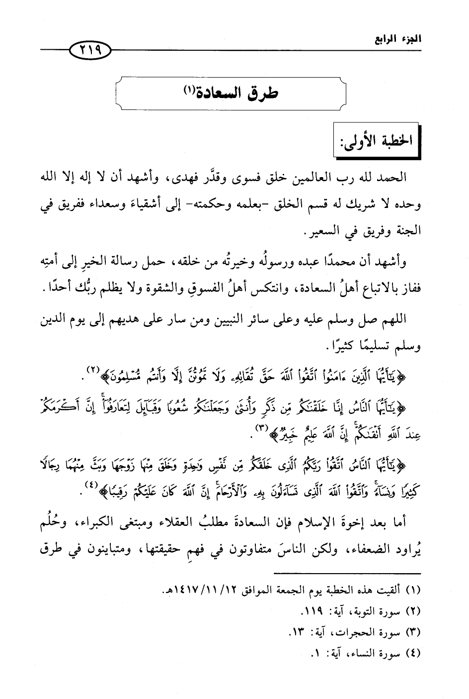 (¬1) ألقيت هذه الخطبة يوم الجمعة الموافق 12/ 11/ 1417 هـ.