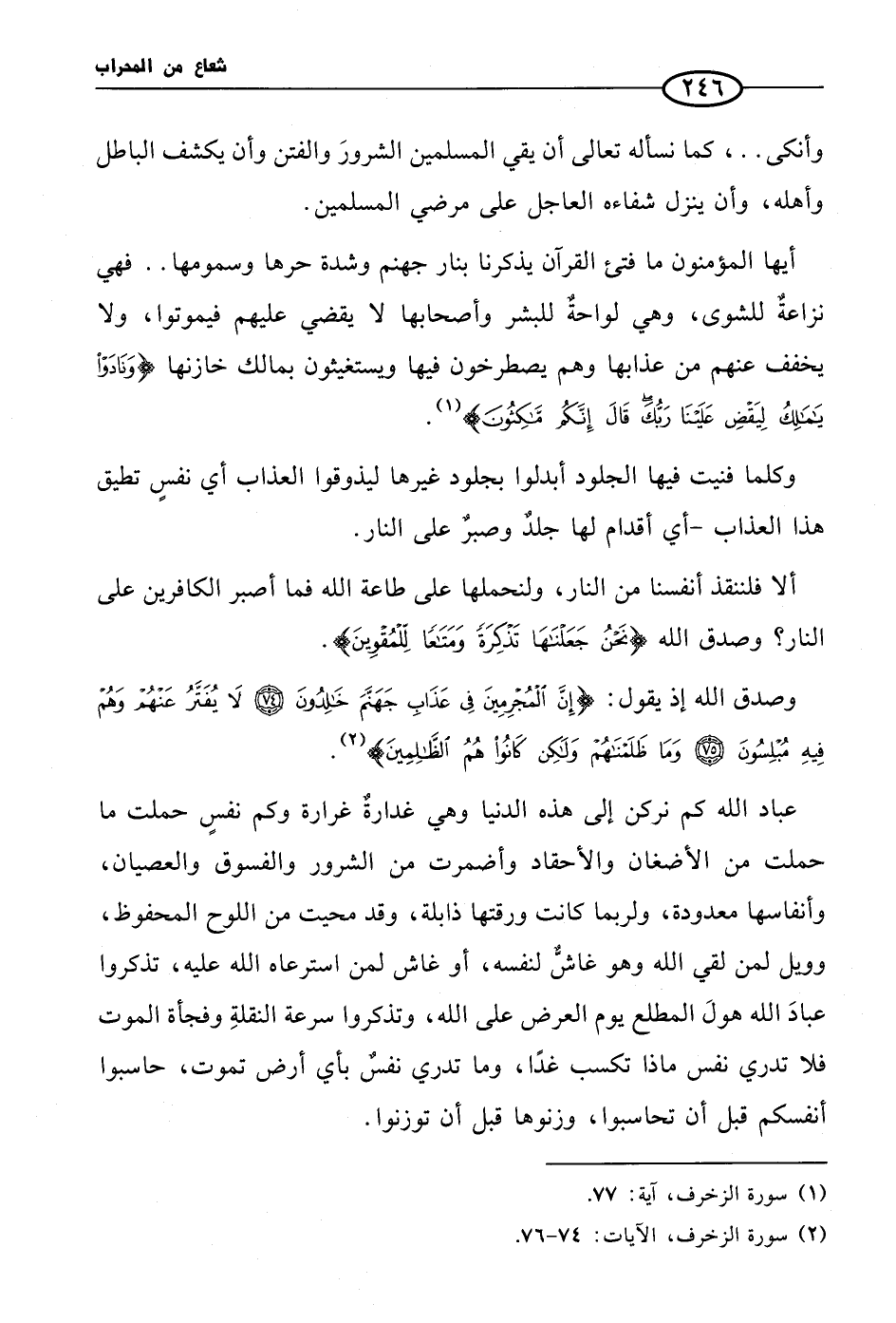وصدق الله إذ يقول: {إِنَّ الْمُجْرِمِينَ فِي عَذَابِ جَهَنَّمَ خَالِدُونَ (74) لا يُفَتَّرُ عَنْهُمْ وَهُمْ فِيهِ مُبْلِسُونَ (75) وَمَا ظَلَمْنَاهُمْ وَلَكِن كَانُوا هُمُ الظَّالِمِينَ} (¬2).