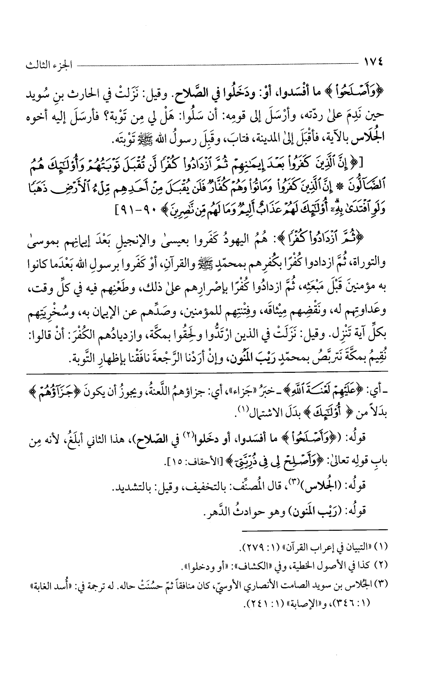 قوله: ((وَأَصْلَحُوا) ما أفسدوا، أو دخلوا في الصلاح)، هذا الثاني أبلغ، لأنه من باب قوله تعالى: (وَأَصْلِحْ لِي فِي ذُرِّيَّتِي) [الأحقاف: 15].