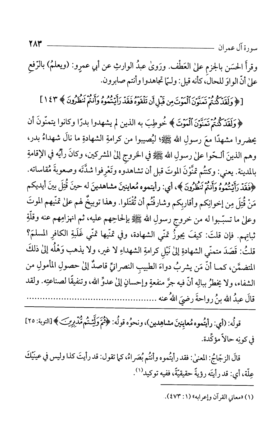 (وَلَقَدْ كُنْتُمْ تَمَنَّوْنَ الْمَوْتَ مِنْ قَبْلِ أَنْ تَلْقَوْهُ فَقَدْ رَأَيْتُمُوهُ وَأَنْتُمْ تَنْظُرُونَ) 143].