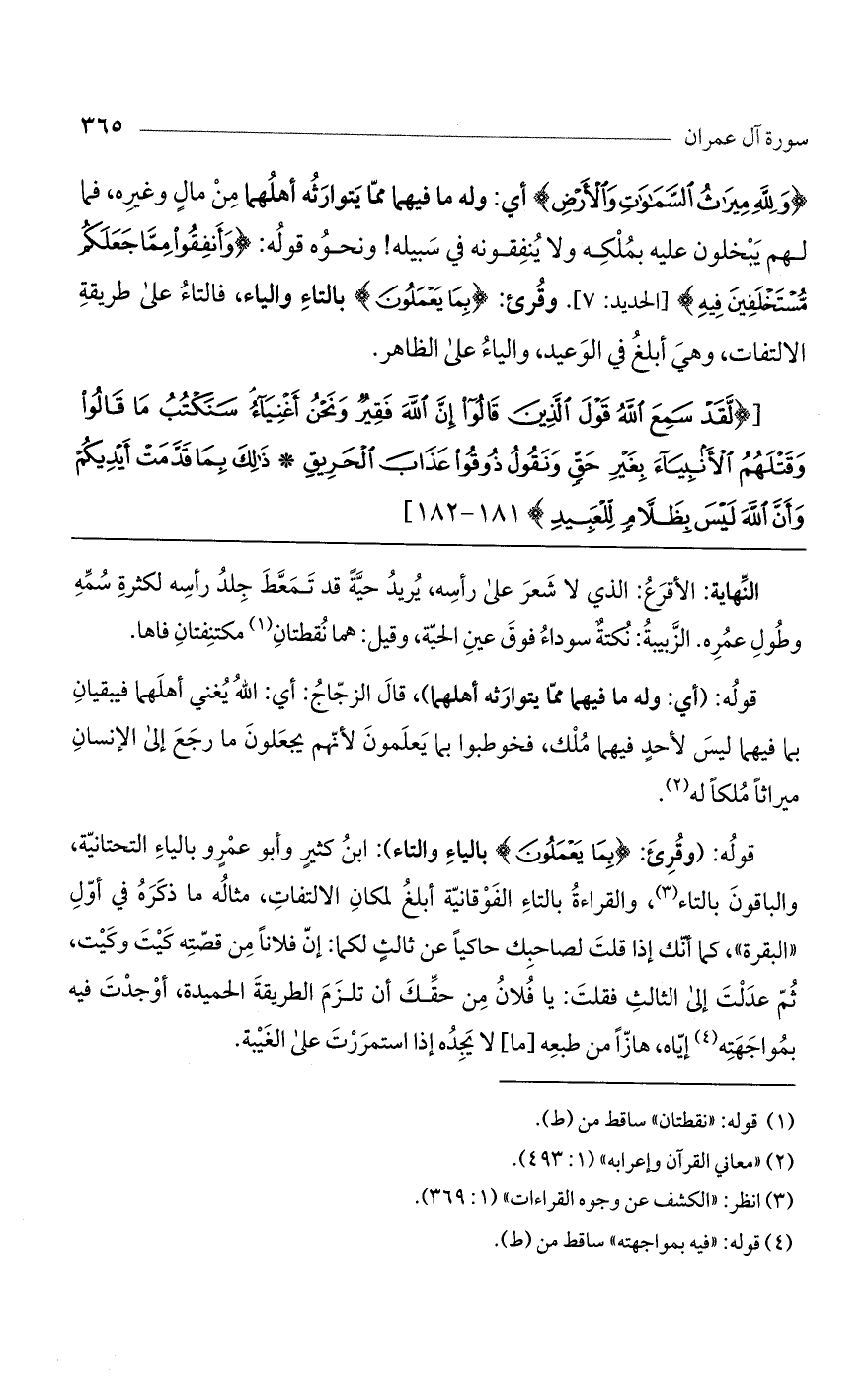 (لَقَدْ سَمِعَ اللَّهُ قَوْلَ الَّذِينَ قالُوا إِنَّ اللَّهَ فَقِيرٌ وَنَحْنُ أَغْنِياءُ سَنَكْتُبُ ما قالُوا وَقَتْلَهُمُ الْأَنْبِياءَ بِغَيْرِ حَقٍّ وَنَقُولُ ذُوقُوا عَذابَ الْحَرِيقِ (181) ذلِكَ بِما قَدَّمَتْ أَيْدِيكُمْ وَأَنَّ اللَّهَ لَيْسَ بِظَلاَّمٍ لِلْعَبِيدِ) 181 ـ 182].