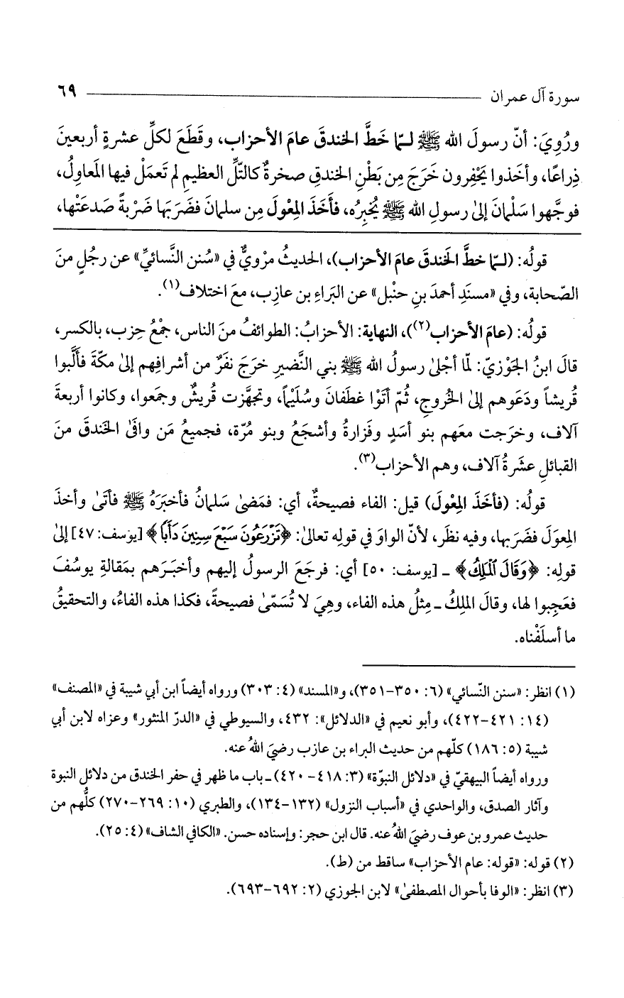 قوله: (لما خط الخندق عام الأحزاب)، الحديث مروي في "سنن النسائي" عن رجل من لاصحابة، وفي "مسند أحمد بن حنبل" عن البراء بن عازب، مع اختلاف.