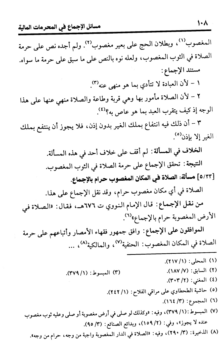 [33/ 5] مسألة: الصلاة في المكان المغصوب حرام بالإجماع.