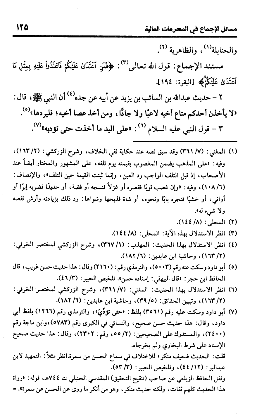 • مستند الإجماع: قول اللَّه تعالى (¬3): {فَمَنِ اعْتَدَى عَلَيْكُمْ فَاعْتَدُوا عَلَيْهِ بِمِثْلِ مَا اعْتَدَى عَلَيْكُمْ} [البقرة: 194].