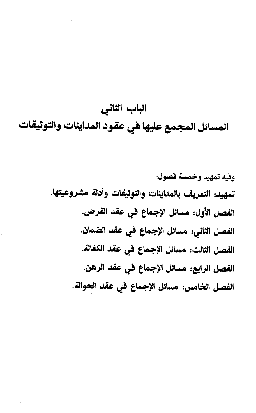 الباب الثاني المسائل المجمع عليها في عقود المداينات والتوثيقات