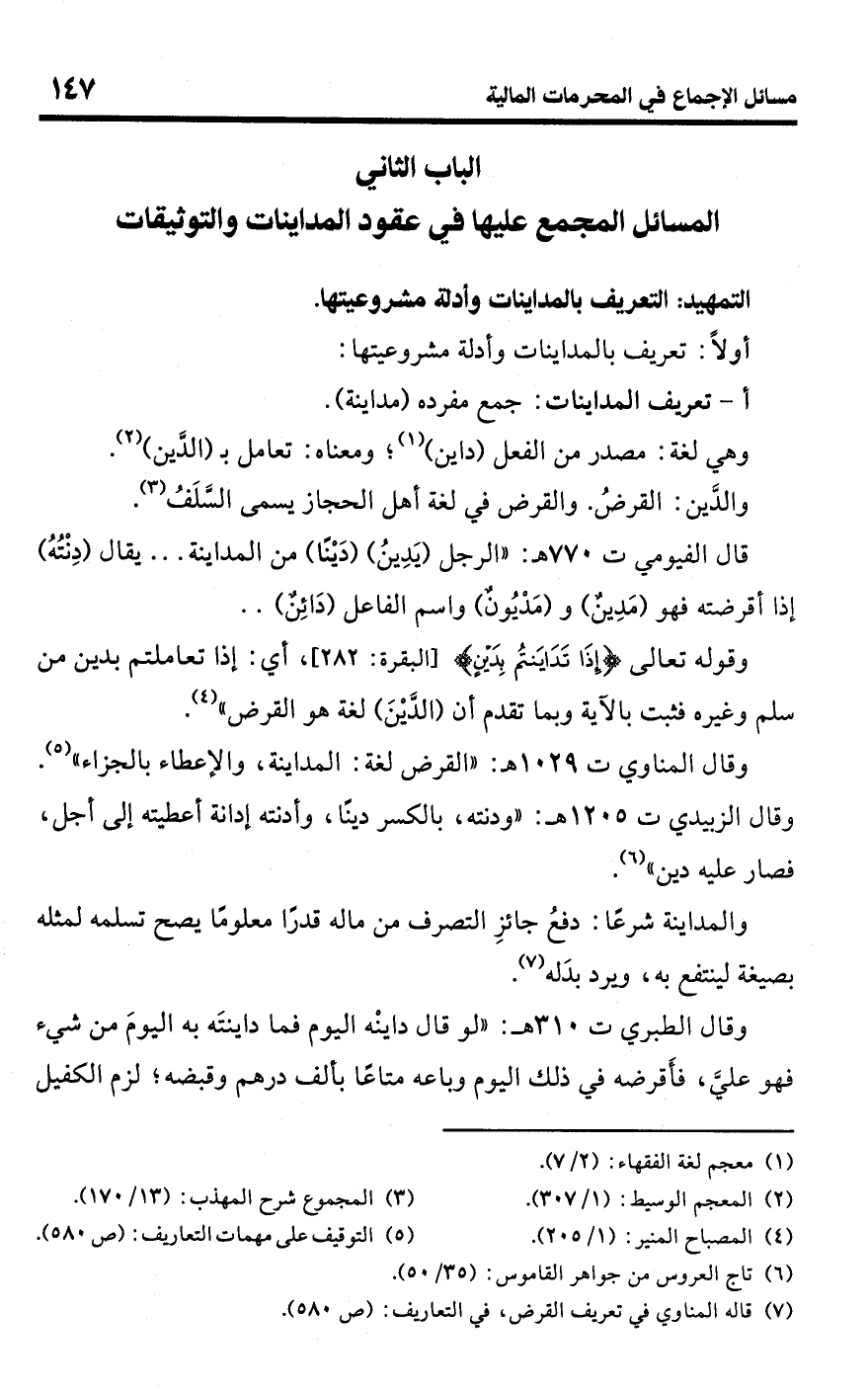 الباب الثاني المسائل المجمع عليها في عقود المداينات والتوثيقات