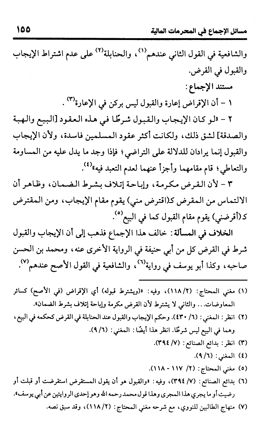 (¬2) انظر: المغني: (6/ 430). وحكم الإيجاب والقبول عند الحنابلة في القرض كحكمه في البيع، وهما في اليع ليس شرطًا. انظر هذا أيضًا: المغني: (6/ 9).