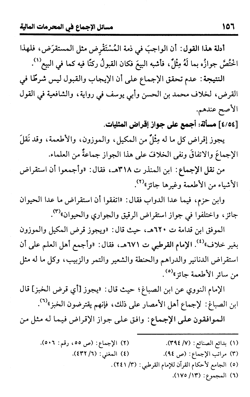 [54/ 4] مسألة: أجمع على جواز إقراض المثليات.