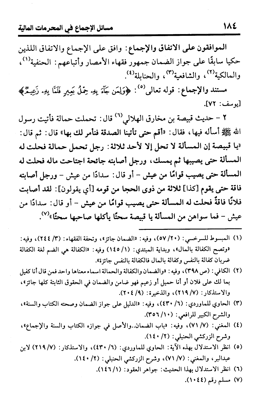(¬4) المغني: (7/ 71)، وفيه: "باب الضمان. . والأصل في جوازه الكتاب والسنة والإجماع"، وشرح الزركشي الحنبلي: (2/ 140).