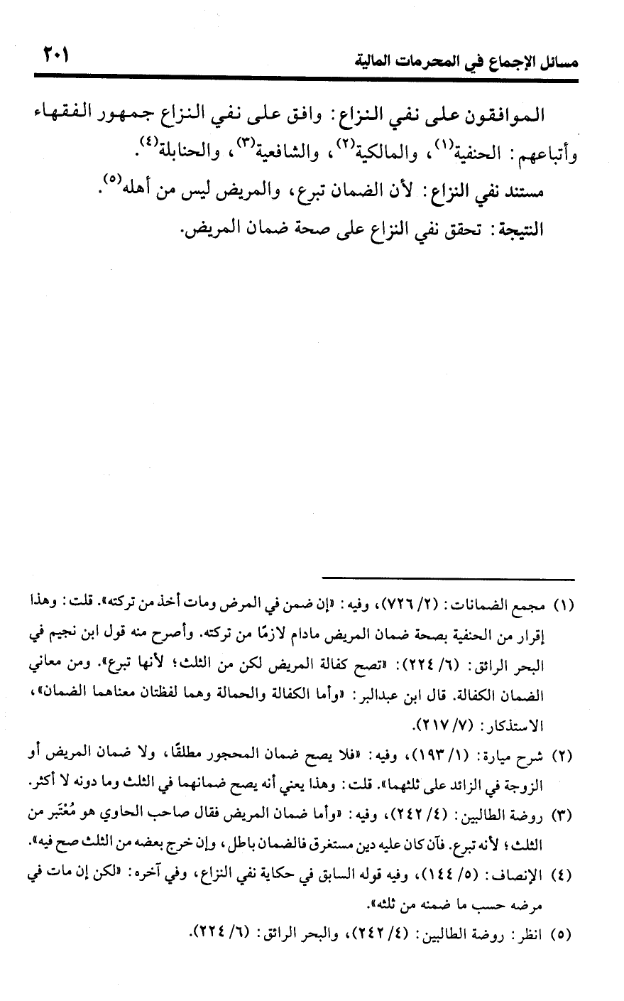 • مستند نفي النزاع: لأن الضمان تبرع، والمريض ليس من أهله (¬5).Rتحقق نفي النزاع على صحة ضمان المريض.