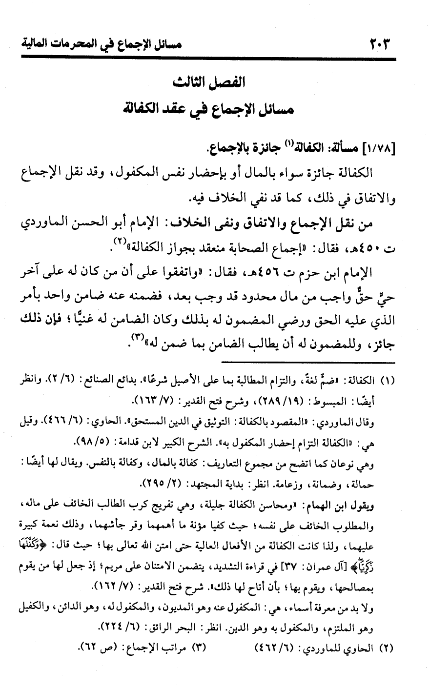 الفصل الثالث مسائل الإجماع في عقد الكفالة