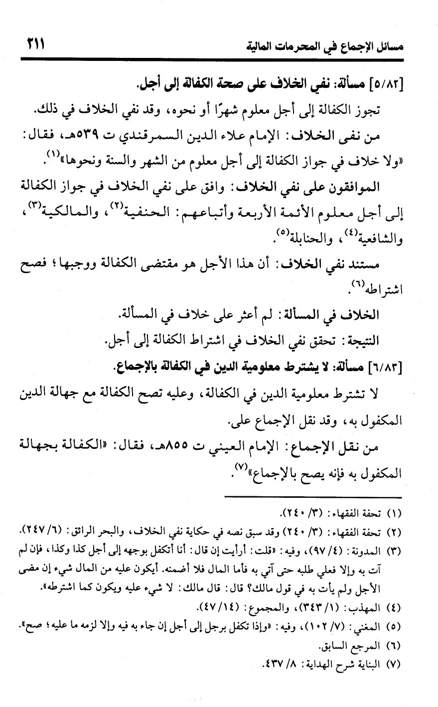 [83/ 6] مسألة: لا يشترط معلومية الدين في الكفالة بالإجماع.