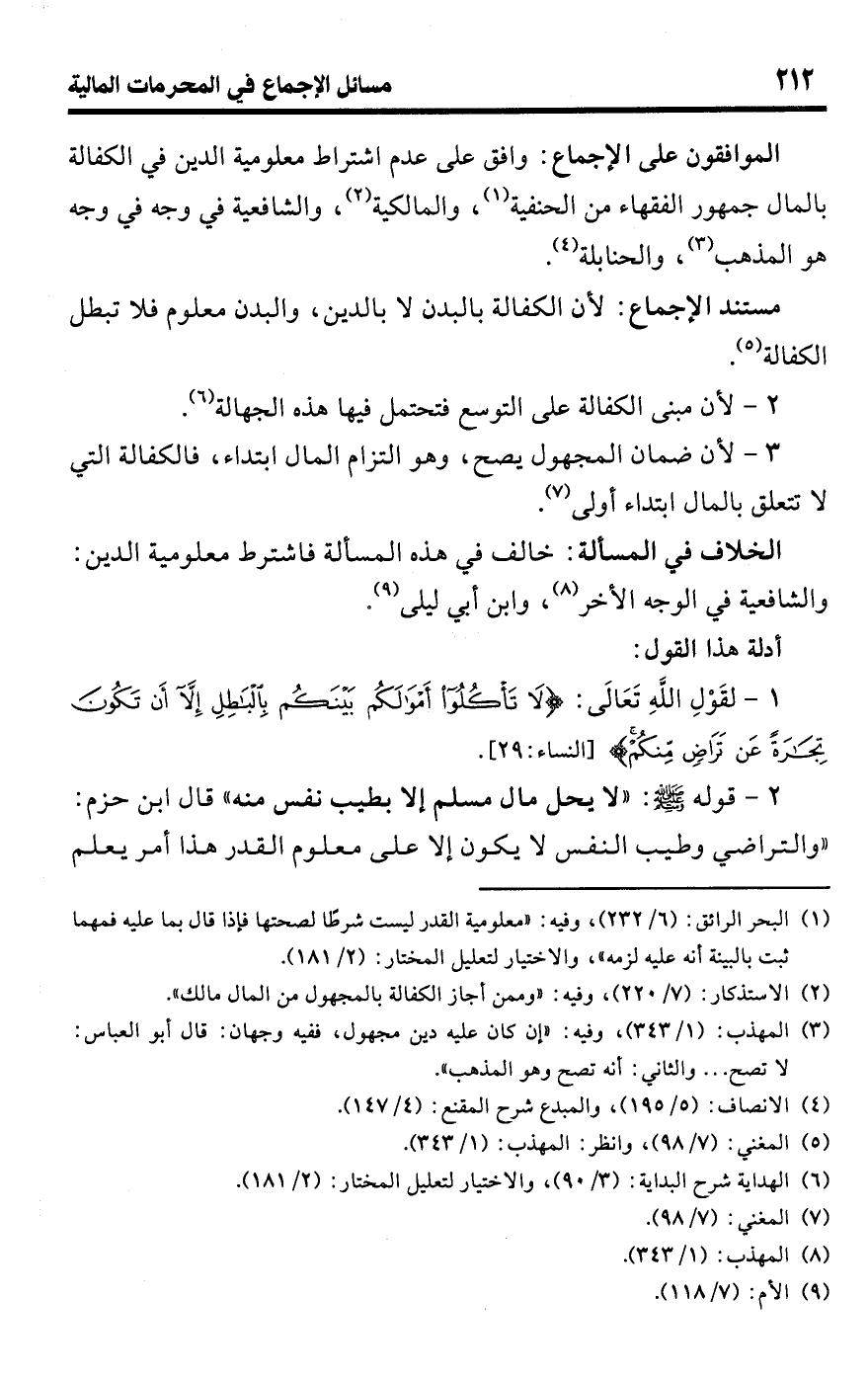 • الموافقون على الإجماع: وافق على عدم اشتراط معلومية الدين في الكفالة بالمال جمهور الفقهاء من الحنفية (¬1)، والمالكية (¬2)، والشافعية في وجه فى وجه هو المذهب (¬3)، والحنابلة (¬4).