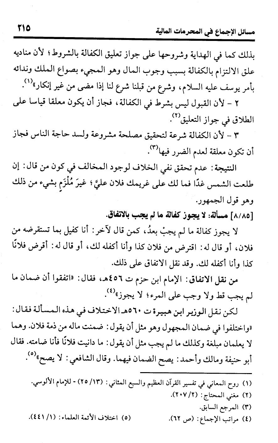 3 - لأن الكفالة شرعة لتحقيق مصلحة مشروعة ولسد حاجة الناس فجاز أن تكون معلقة لعدم الضرر فيها (¬3).Rعدم تحقق نفي الخلاف لوجود المخالف في كون من قال: إن طلعت الشمس غدًا فما لك على غريمك فلان علىَّ؛ غيرَ مُلْزَمٍ بشيء من ذلك وهو قول الجمهور.
