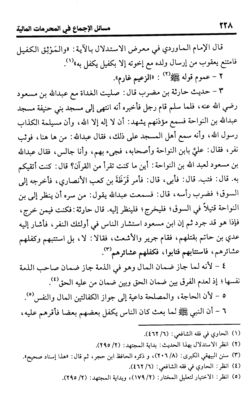 (¬5) انظر: الاختيار لتعليل المختار: (2/ 179)، وبداية المجتهد: (2/ 295).