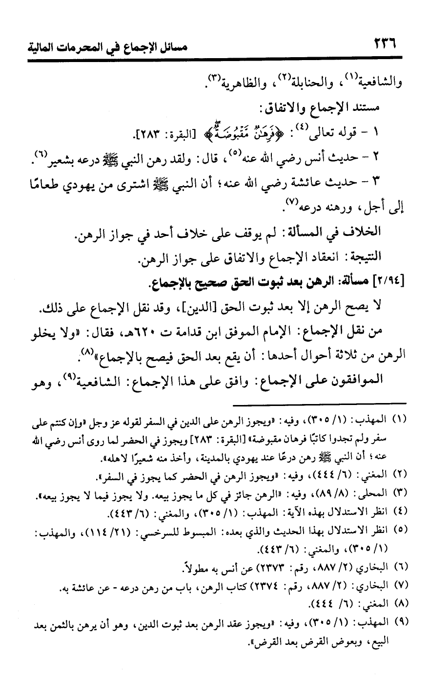 • الخلاف في المسألة: لم يوقف على خلاف أحد في جواز الرهن.Rانعقاد الإجماع والاتفاق على جواز الرهن.
