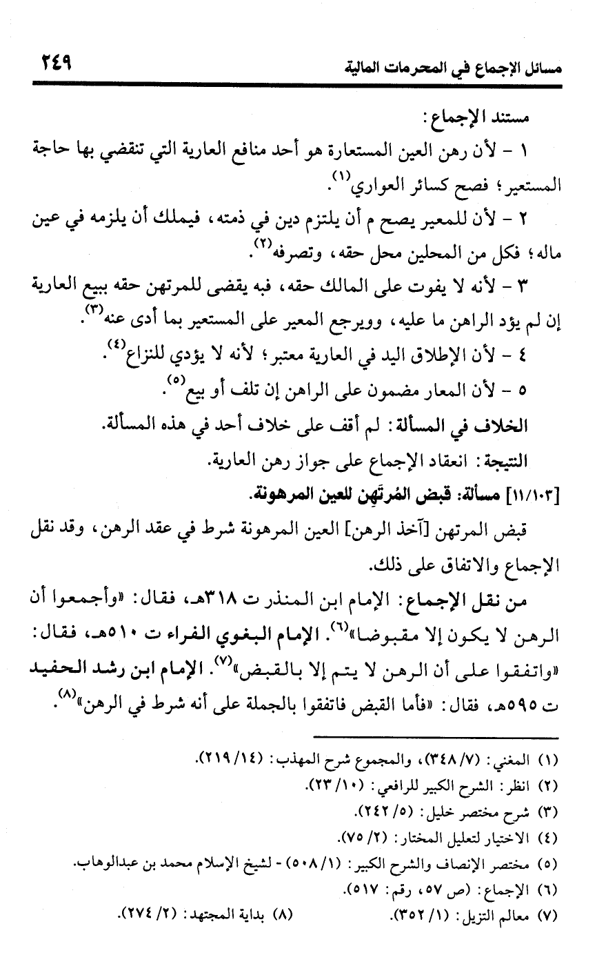 • الخلاف في المسألة: لم أقف على خلاف أحد في هذه المسألة.Rانعقاد الإجماع على جواز رهن العارية.