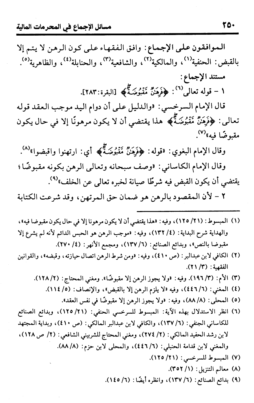 وقال الإمام الكاساني: "وصف سبحانه وتعالى الرهن بكونه مقبوضًا؛ يقتضي أن يكون القبض فيه شرطًا صيانة لخبره تعالى عن الخلف" (¬9).