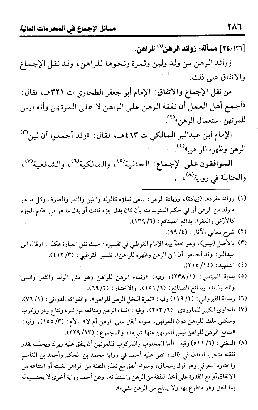 (¬3) بالأصل (ليس)، وهو خطأ بينه الإمام القرطبي في تفسيره؛ حيث نقل العبارة هكذا: "وقال ابن عبد البر: وقد أجمعوا أن لبن الرهن وظهره للراهن". تفسير القرطبي: (3/ 412).
