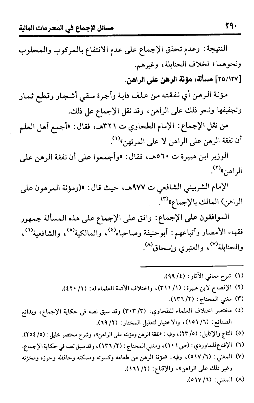 • من نقل الإجماع: الإمام الطحاوي ت 321 هـ، فقال: "أجمع أهل العلم أن نفقة الرهن على الراهن لا على المرتهن" (¬1).
