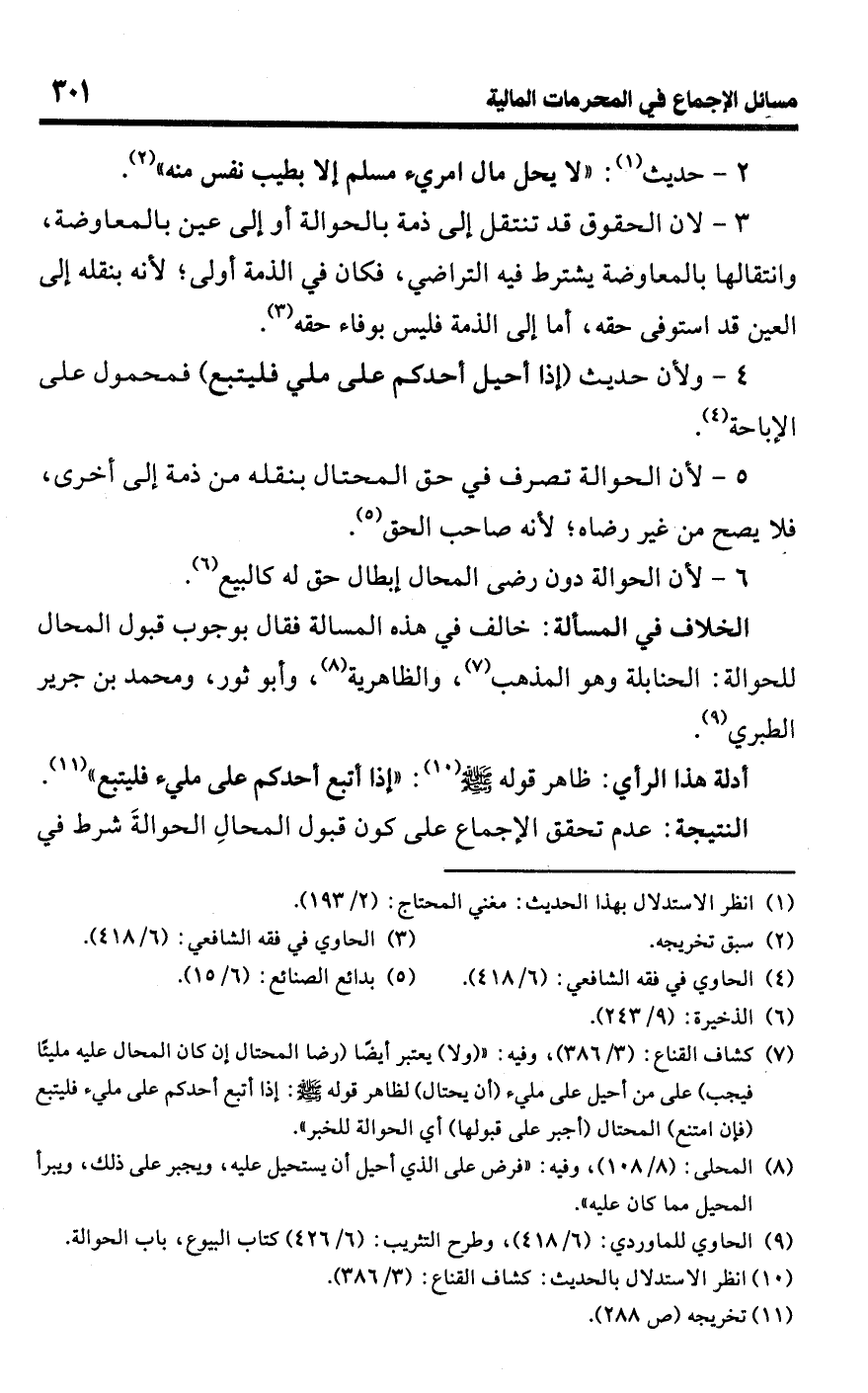 (¬9) الحاوي للماوردي: (6/ 418)، وطرح التثريب: (6/ 426) كتاب البيوع، باب الحوالة.