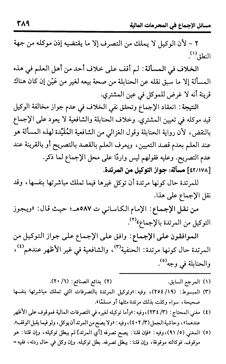 • من نقل الإجماع: الإمام الكاساني ت 587 هـ؛ حيث قال: "ويجوز التوكيل من المرتدة بالإجماع" (¬2).