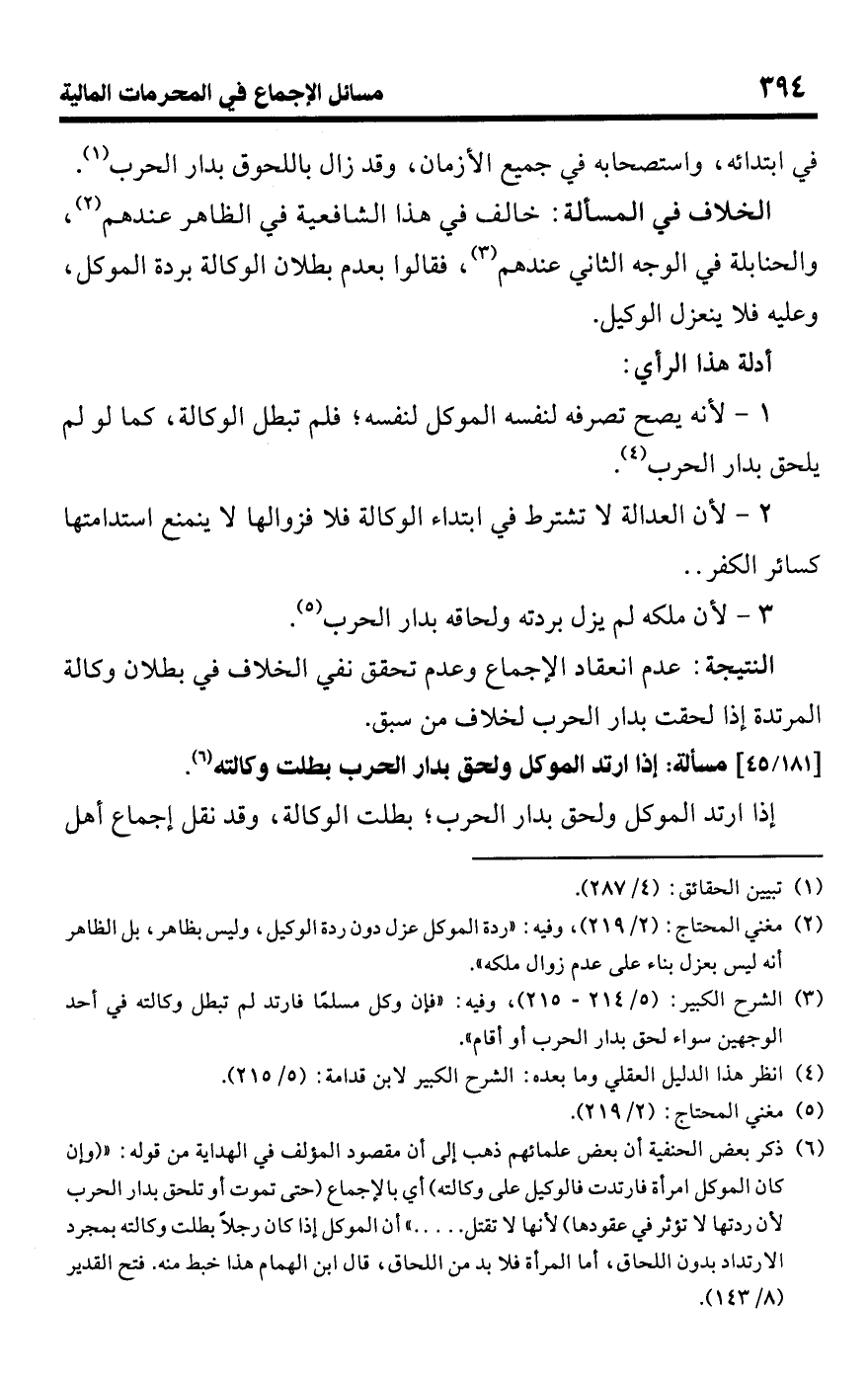 3 - لأن ملكه لم يزل بردته ولحاقه بدار الحرب (¬5).Rعدم انعقاد الإجماع وعدم تحقق نفي الخلاف في بطلان وكالة المرتدة إذا لحقت بدار الحرب لخلاف من سبق.