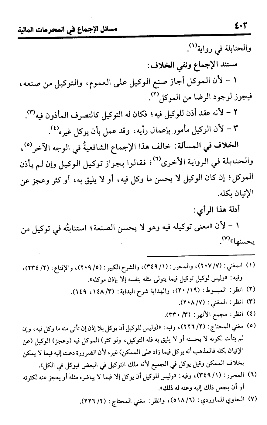 (¬1) المغني: (7/ 207)، والمحرر: (1/ 349)، والشرح الكبير: (5/ 209)، والإقناع: (2/ 234)، وفيه: "وليس لوكيل توكيل فيما يتولى مثله بنفسه إلا بإذن موكله".