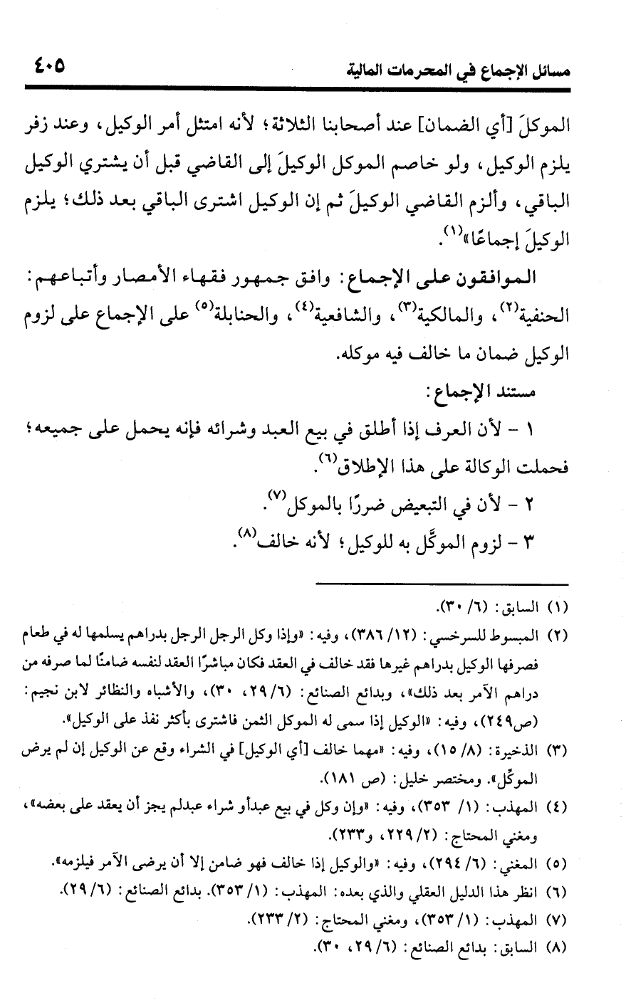 • الموافقون على الإجماع: وافق جمهور فقهاء الأمصار وأتباعهم: الحنفية (¬2)، والمالكية (¬3)، والشافعية (¬4)، والحنابلة (¬5) على الإجماع على لزوم الوكيل ضمان ما خالف فيه موكله.