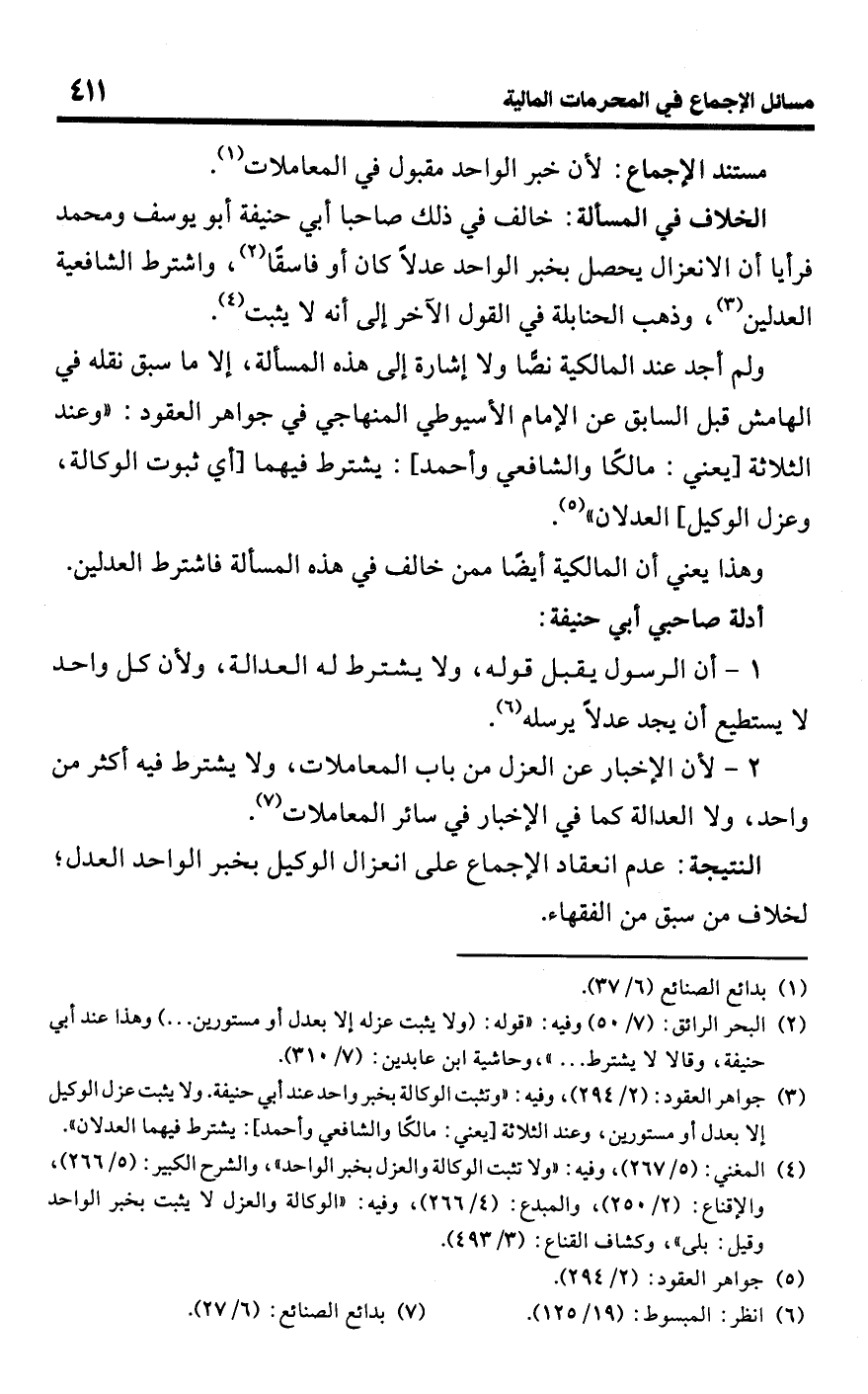 2 - لأن الإخبار عن العزل من باب المعاملات، ولا يشترط فيه أكثر من واحد، ولا العدالة كما في الإخبار في سائر المعاملات (¬7).Rعدم انعقاد الإجماع على انعزال الوكيل بخبر الواحد العدل؛ لخلاف من سبق من الفقهاء.