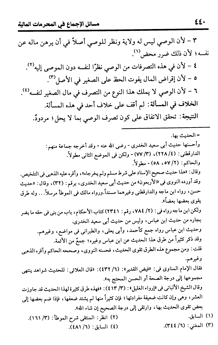 • الخلاف في المسألة: لم أقف على خلاف أحد في هذه المسألة.Rتحقق الاتفاق على كون تصرف الوصي بما لا يحل؛ مردودٌ.