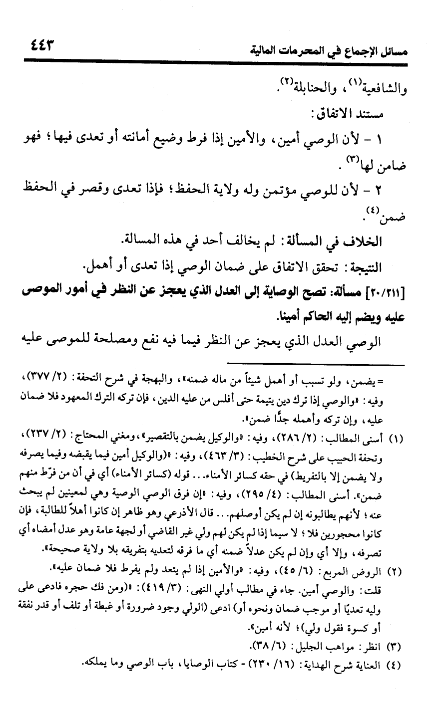 [211/ 20] مسألة: تصح الوصاية إلى العدل الذي يعجز عن النظر فى أمور الموصى عليه ويضم إليه الحاكم أمينا.