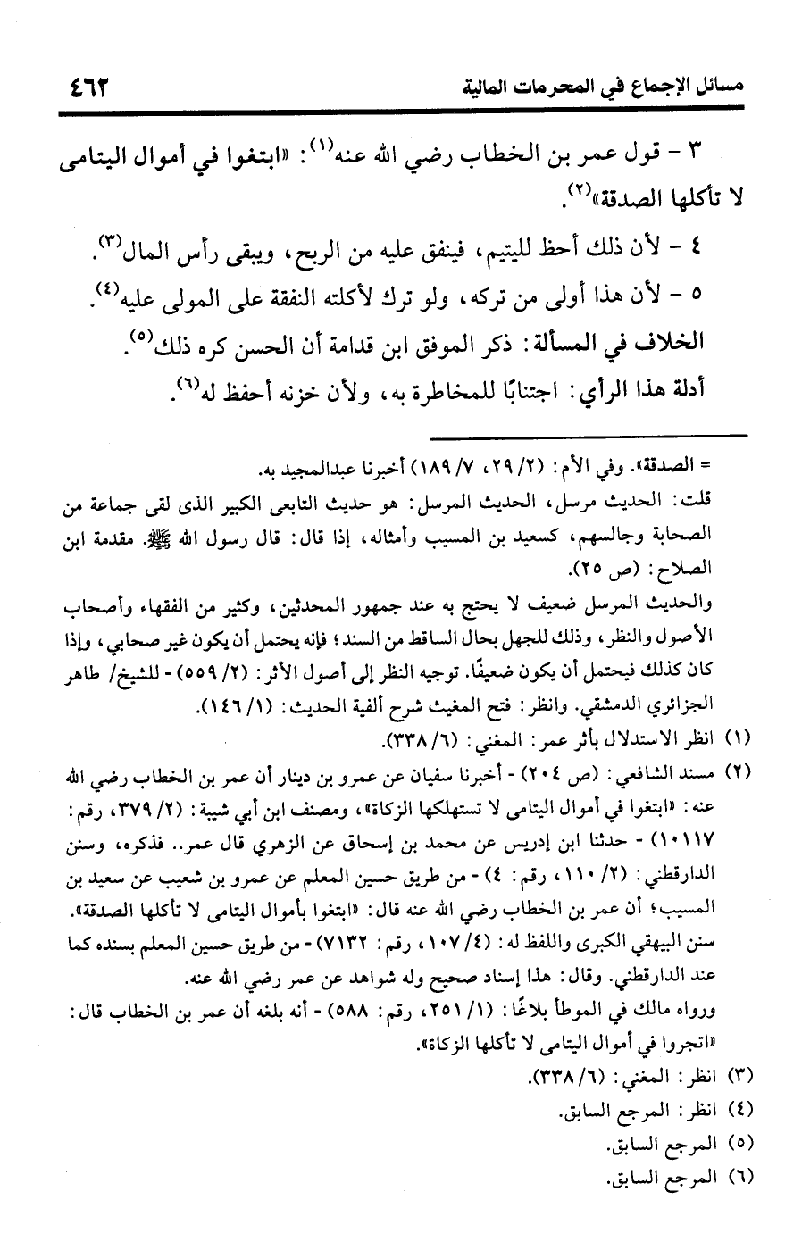 3 - قول عمر بن الخطاب رضي اللَّه عنه (¬1): "ابتغوا في أموال اليتامى لا تأكلها الصدقة" (¬2).