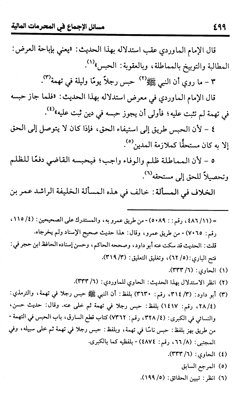 قال الإمام الماوردي في معرض استدلاله بهذا الحديث: "فلما جاز حبسه في تهمة لم تثبت عليه؛ فأولى أن يجوز حبسه في دين ثبت عليه" (¬4).