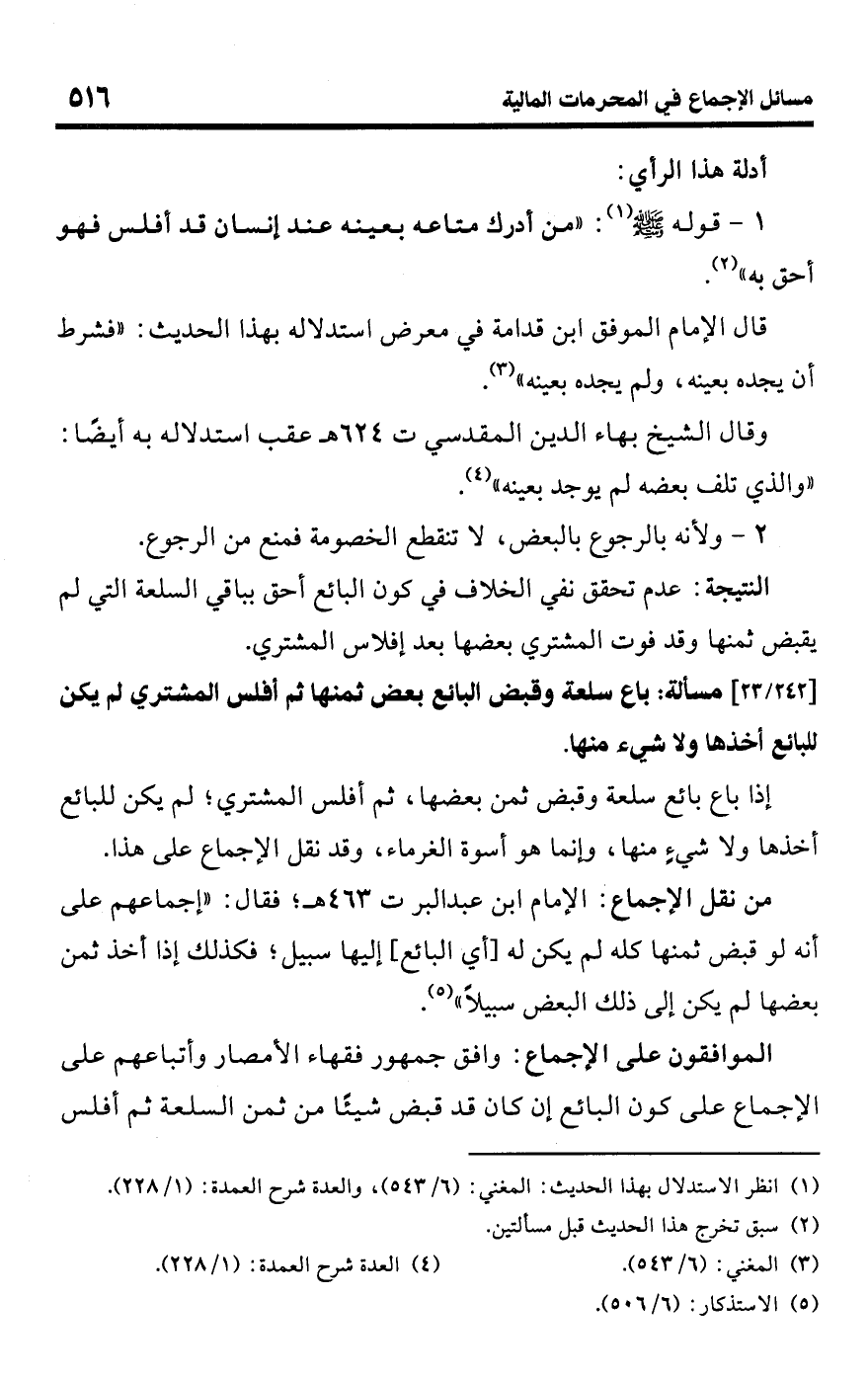 (¬1) انظر الاستدلال بهذا الحديث: المغني: (6/ 543)، والعدة شرح العمدة: (1/ 228).