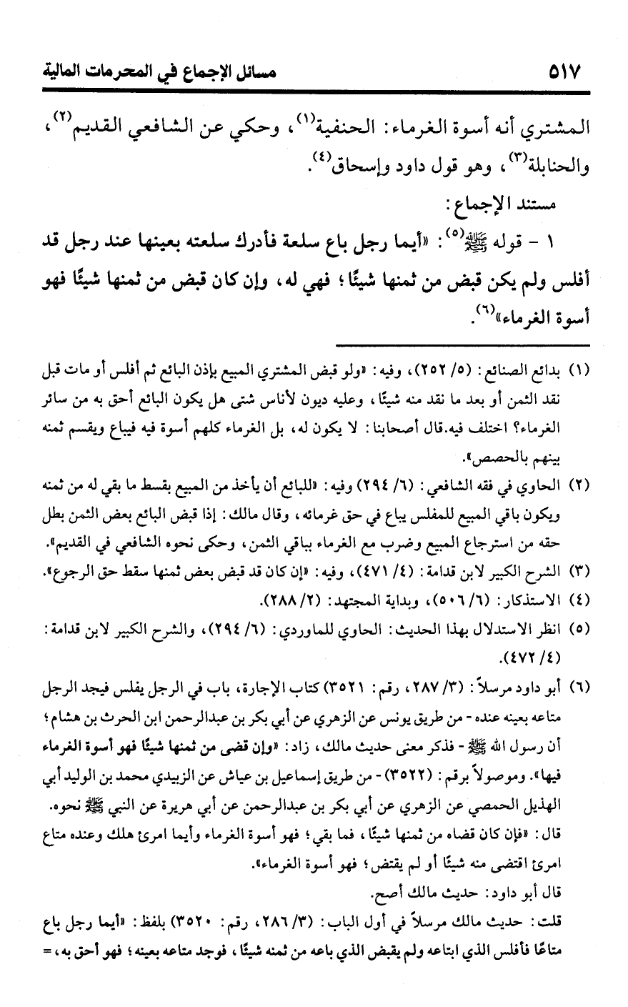 (¬3) الشرح الكبير لابن قدامة: (4/ 471)، وفيه: "إن كان قد قبض بعض ثمنها سقط حق الرجوع".